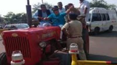 ट्रैक्टर से विधानसभा पहुंचे MLA, पुलिस से झड़प; ‘नारी शक्ति...