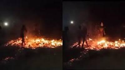 सड़क हादसे में 3 महिलाओं की मौत, ग्रामीणों ने टायर जलाकर किया प्रदर्शन