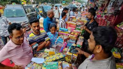 पटाखा बाजार में लगी भीषण आग, 60 से अधिक दुकानें जली, कई दुकानदार भी झुलसे
