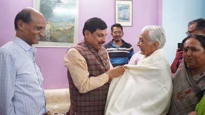 भोपाल : मुख्यमंत्री डॉ. मोहन यादव ने बुधवार को उज्जैन में गुरू (प्रोफेसर) श्री कैलाश चंद्र शील के निवास पहुँचकर उनसे आशीर्वाद प्राप्त किया। मुख्यमंत्री डॉ. यादव ने उन्हें शॉल...