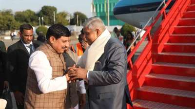 उप राष्ट्रपति धनखड़ का मुख्यमंत्री डॉ. यादव ने किया स्वागत