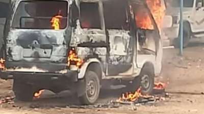 दर्दनाक हादसे के बाद भड़की भीड़, वैन को लगाई आग, दो युवकों की गई जान