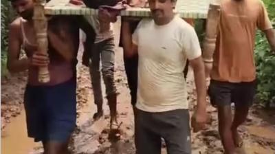 MP के मैहर में विकास की पोल खुली: सड़क न होने से नहीं आई एंबुलेंस, खाट पर 2 KM बीमार को लेकर चले ग्रामीण