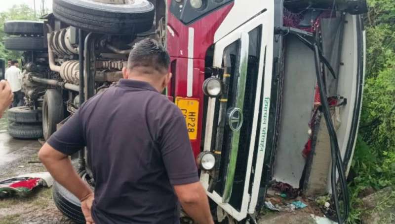 अनियंत्रित होकर बस पलटी, 20 यात्री घायल, सोलन में हो रही थी भारी बारिश