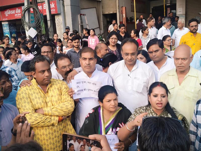 मंदाकिनी चौराहा पर शराब दुकान के खिलाफ फूटा गुस्सा, रहवासियों का जोरदार प्रदर्शन