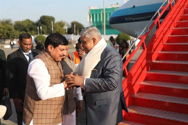 उप राष्ट्रपति धनखड़ का मुख्यमंत्री डॉ. यादव ने किया स्वागत