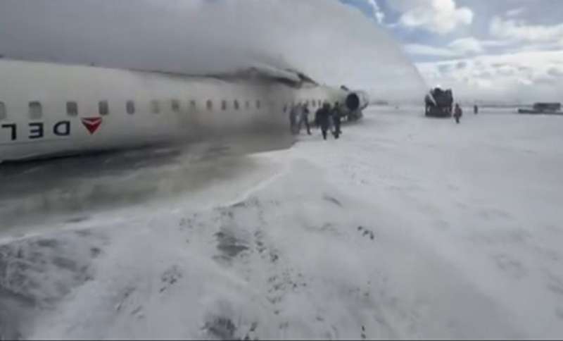 टोरंटो में डेल्टा एयरलाइंस का विमान क्रैश, लैंडिंग के दौरान पलटा