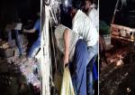 सड़क पर शराब से भरा ट्राला पलटा, लूट मचाने पहुंची भीड़ ने पुलिस पर किया पथराव